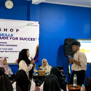 Workshop ini menghadirkan pemateri Ibu Ikeu Triana Yulie Asih dari Bank Muamalat KC Sumber. Beliau memberikan wawasan langsung mengenai pentingnya sikap profesional dan etika kerja di lingkungan perbankan maupun dunia industri secara umum.